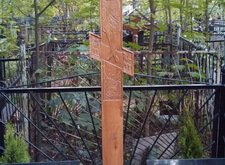 Работы были выполнены к концу мая – могилы уже не были провалены, старый памятник заменили на памятные таблички, на земле выложена брусчатка, обновили ограду – стала выглядеть, как новая. Озеленение места захоронения стало очень удачным. Приятным бонусом было интересное решение по укреплению креста.